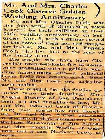 "This is the story of how I came to live with grandma and grandpa Cook in Cloverdale. Mom contacted polio in 1946 when she was pregnant with Bill. It was shortly before he was born and so I was about 14 months old. Grandma and grandpa Cook came back on the train to help take care of all of us. When mom was recovered enough, they decided that she could handle a newborn and the three older girls, but because I was a toddler, I would go with my grandparents back to Cloverdale.